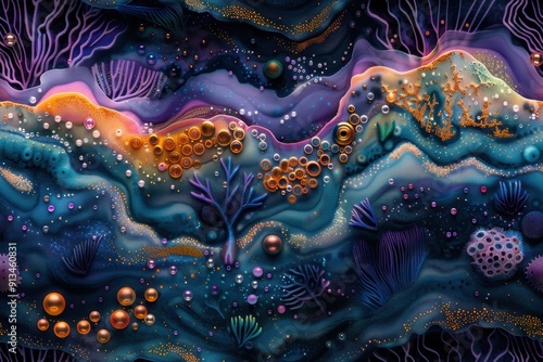Abstract Underwater Landscape with Organic Forms and Glitter
