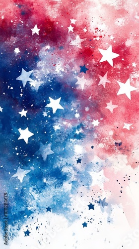 Abstract USA Patriotic Red, White, and Blue Watercolor with Stars for National Celebrations