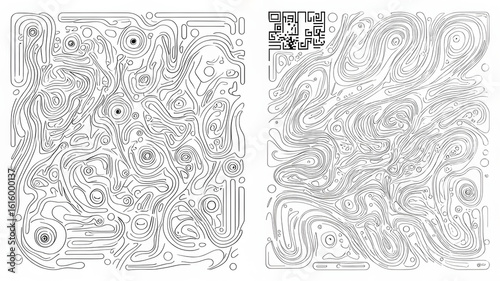 Abstract vector artwork featuring intricate flowing lines and organic shapes in black and white
