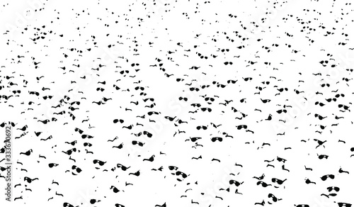 Abstract vector noise. Small particles of debris and dust. Distressed uneven background. Grunge texture overlay with rough and fine grains isolated on white background. Vector illustration. EPS10.
