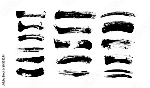Abstract vector paint smears set. Hand drawn design element. Black ink marks on white background. Grunge texture.