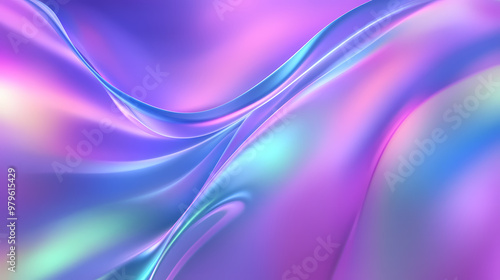 Abstract vector shapes in glowing holographic gradient purple, blue, pink and green background. Soft Glow. Illustration