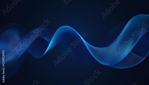 Abstract Vibrant Cyan Flowing Lines on Dark Blue, Wave Pattern, Dynamic Motion, Digital Art