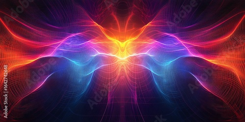 Abstract Vibrant Neon Light Waves in Dynamic Digital Art Composition