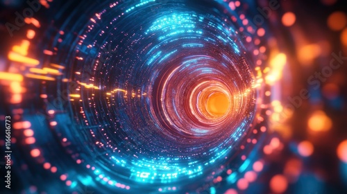 Abstract vibrant tunnel with glowing light effects.