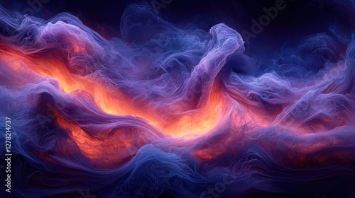 Abstract vibrant waves of orange and blue swirling in a cosmic landscape