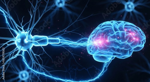 Abstract visualization of a human brain and neural network connections