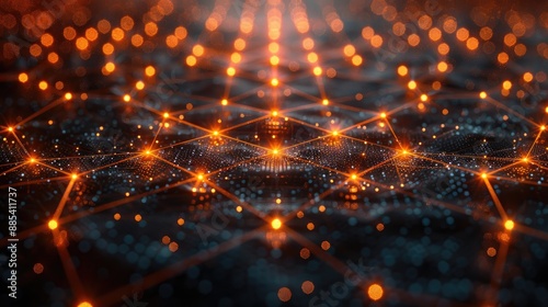 Abstract visualization of glowing orange nodes connecting to form a network structure on a dark background, depicting data communication.