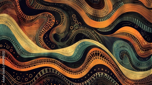Abstract vivid patterns express old powerful symbol of ancient tribe. Seamless history texture of vividness design convey sense of antique and tribal era perfect for archeology graphic style. AIG61.