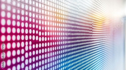 Abstract wall with repeating circular pattern and vibrant color gradient from pink to blue