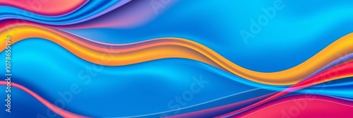 Abstract wallpaper featuring blue 3D undulating lines in a colorful render with copy space, abstract, render