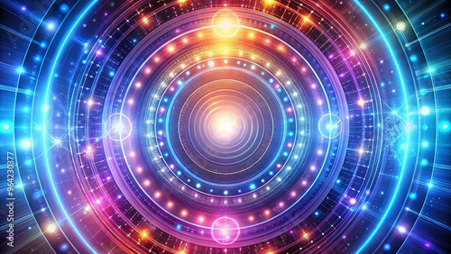 Abstract wallpaper featuring interconnected circular patterns with vibrant light effects