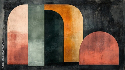 Abstract Warm Hues Geometric Shapes Dark Background. AI Generated