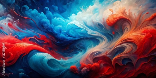 Abstract Watercolor Background: Blue and Red Swirls, Artistic Texture, Fluid Paint Design