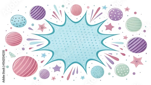 Abstract Watercolor Background with Planets, Stars, Dots, and an Explosion, Perfect for Creative Designs.