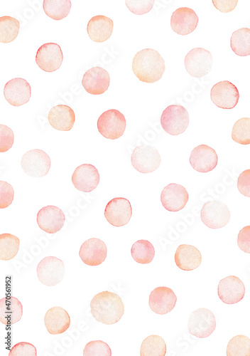 Abstract watercolor background with round spots in pastel colors. Muted pink and peach shades. Perfect for cards, invitations, covers, decorations, print.