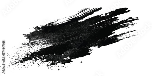 Abstract watercolor brush stroke in black and purple for creative design. Bold swipe of paint with brush strokes on white background