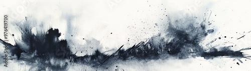 Abstract Watercolor Painting Black and White Ink Splatter Grunge Texture Brushstrokes Background