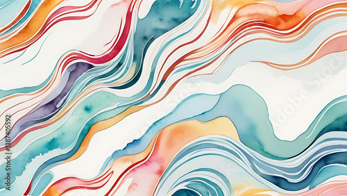 Abstract Watercolor Painting with Flowing Lines and Earthy Pastel Colors