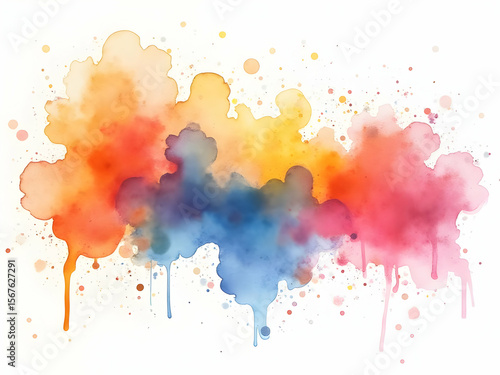 Abstract Watercolor Splash Background Orange Yellow Blue Pink Red Color Drips Blotches Texture image