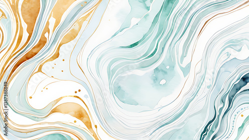 Abstract Watercolor Swirl Painting with Teal and Gold for Background Design