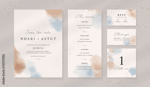 Abstract watercolor wedding invitation template. set of wedding stationery. luxury card and poster background.