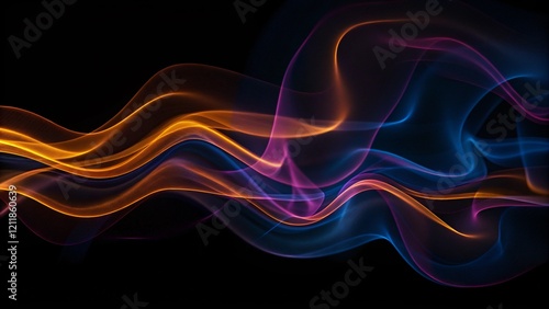 Abstract wave lines pattern dynamic colorful light flowing isolated on black background, modern motion energy swirl vibrant glowing neon curve futuristic stream design texture elegance