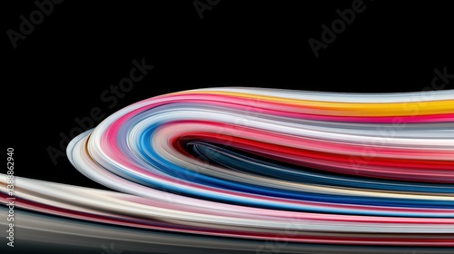 Abstract Wave of Colors: A captivating composition of fluid, dynamic streaks of vibrant colors flowing across a sleek, dark expanse, creating an artistic, modern aesthetic.