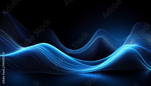 abstract wave pattern glowing blue lines on black background sound wave visualization