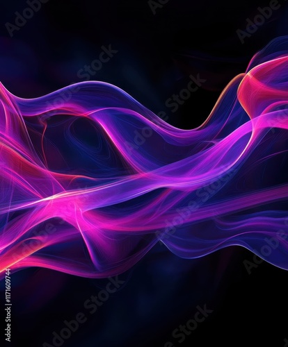 Abstract wave, vibrant neon colors, flowing energy, cosmic background, purple and blue hues, dynamic motion, digital art, surreal landscape, glowing particles, futuristic design, smooth curves, ethere