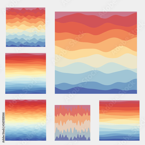 Abstract waves background collection. Curves in red, yellow, blue colors. Modern vector illustration.