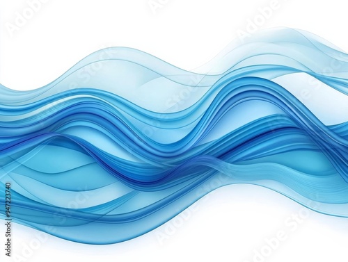 Abstract waves, flowing lines with cool blue hues, watercolor background