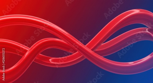 abstract waves, intertwining ribbons, vibrant red and blue, fluid motion, dark background, dynamic curves, smooth gradients, digital art, minimalist composition, flowing lines, contrast colors, sleek