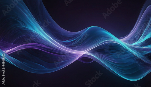 Abstract waves of light in shades of blue and purple flow gracefully across a dark background, creating a sense of motion and ethereal beauty.