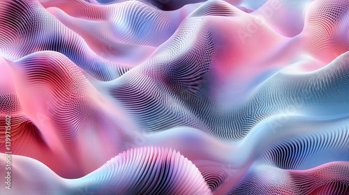Abstract waves of pink and blue colors flowing in a digital landscape with smooth gradients