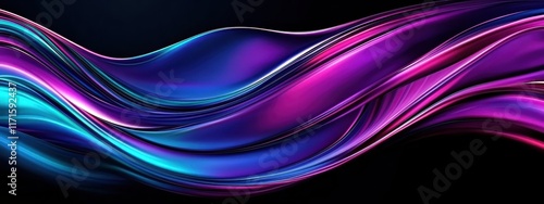 Abstract waves, vibrant colors, neon glow, fluid motion, digital art, smooth curves, electric blue, vivid purple, dynamic composition, futuristic design, glossy texture, energy flow, luminous effect,