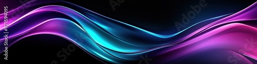Abstract waves, vibrant colors, neon glow, fluid motion, dynamic curves, electric blue, vivid purple, deep black background, glossy texture, futuristic aesthetic, digital art, 3D render, smooth gradie