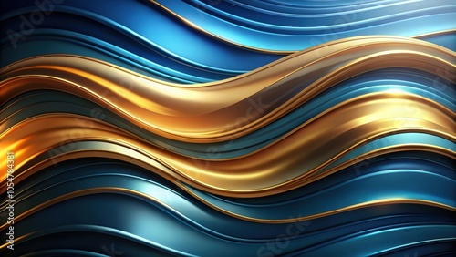 Abstract wavy background with blue and gold tones, abstract, wavy, background, blue, gold, texture, design, modern, elegant