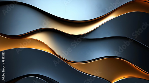 Abstract Wavy Background with Gold and Blue Metallic Texture
