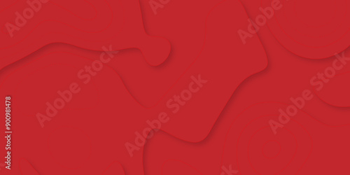 Abstract wavy line 3d paper cut red background with shadows. Abstract realistic papercut decoration textured with wavy layers. Topographic contour lines vector map seamless pattern vector.