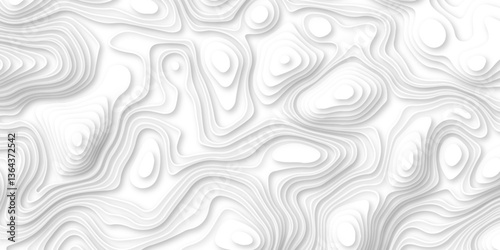 Abstract wavy line 3d paper cut white background. white and gray luxury grid topography map and satin smooth wallpaper matt paper light texture. White waves decorative papercut design.