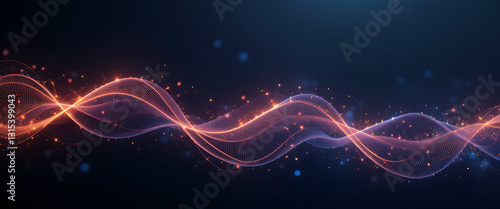 abstract wavy line in flowing style in glowing theme, shimmering sparkling, in a dark background, connected points,