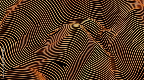 Abstract wavy lines, golden on black. Dynamic flowing design
