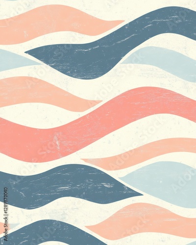 Abstract wavy pattern featuring soft pastel colors of pink, blue, and navy, creating a serene and modern design suitable for backgrounds, textiles, or wallpapers