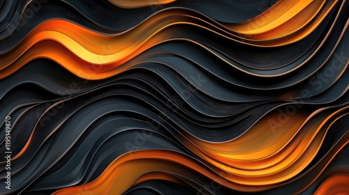 Abstract Wavy Texture in Black and Orange Tones for Background Use