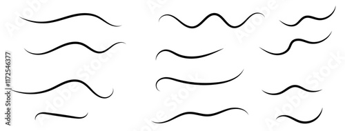 Abstract wavy thin line. Squiggle elements banner. Pattern with scribble, wiggle and undulate. Wavy and swirled brush strokes with rough edges. hand drawn scribbles. Vector illustration