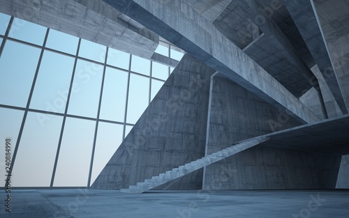 Abstract white and concrete interior multilevel public space with window. 3D illustration and rendering.