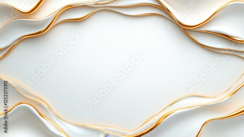 Abstract White and Gold Flowing Wave Background. Generative AI
