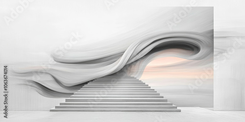 Abstract white and gray staircase leads to a swirling, ethereal opening.