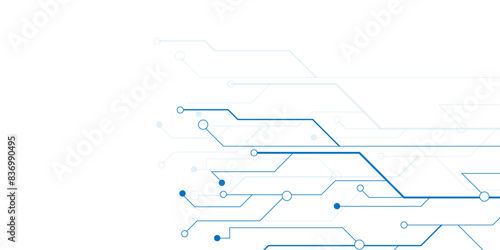 Abstract white background technology line and dots. Vector circuit board illustration. White background with blue technology circuit.